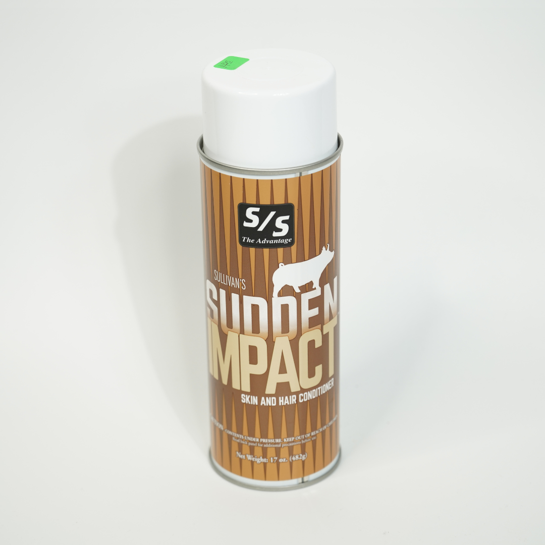 It restores the natural oils and nutrients to the hog’s skin. Not only will it bring life and vigor to dry, scaly skin and coarse hair, it will help take the “red” out of the dry skin. Sudden Impact will give show pigs an unbelievable shine. It is recommended for use at home and shows that allow oil based products.